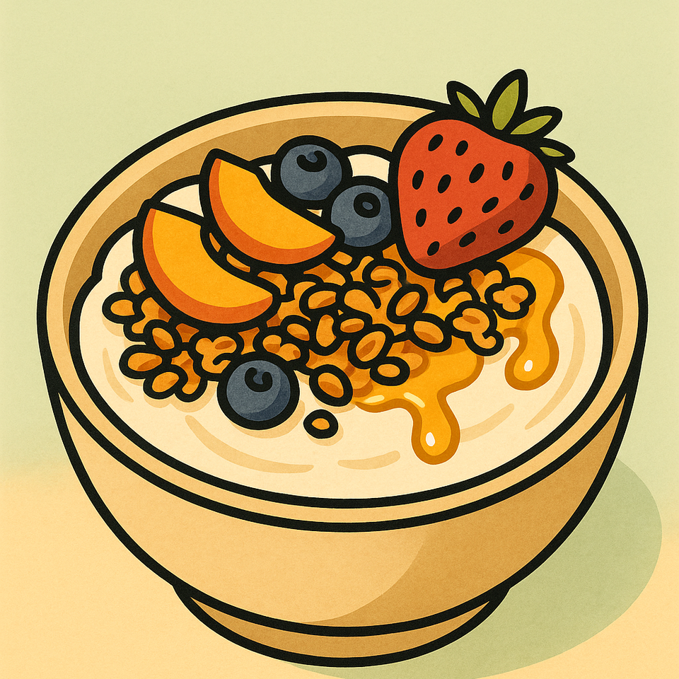 กรีกโยเกิร์ต, กราโนล่า, ผลไม้สด, น้ำผึ้ง