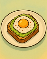 ขนมปังซาวโดว, อะโวคาโดบด, ไข่ดาว, พริกแห้ง
