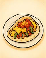 ไข่, พริกหวาน & หอม, ซัลซ่า, ชีส, บนแผ่นตอร์ติญ่าทำมือ